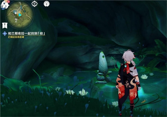 进去之后来到水潭的这个位置,就是任务描述的枝了