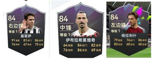 第7天登录游戏,终于等到一张黑卡了,开头提到过等级1级的黑卡球员的能力值范围是83-93,三选一的球员,伊布的话身高+射门,头球任务和禁区内搓射都很好用,就是速度和体质略低;格拉利什进攻和体质相对较低,基耶萨速度到91还是很快的,但对比进攻和传球就稍微低点