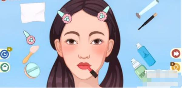 四、末了使用右侧第三个蓝色瓶子的物品,并使用口红给女生抹上,摘下发卡后就能够通关。