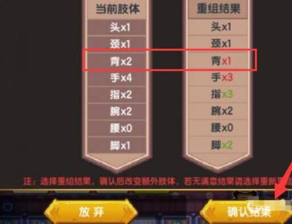五、用基因重组功用,可以抉择获得一组或者五组肢体方案,若是在这些方案中有存在五个违部的,间接选用,如许玩家就会有五个违部,再加之以太病的就是六个违部了。