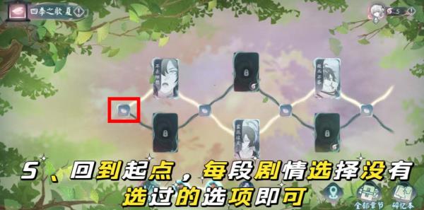 四、遵照上面所说一步一步重复就能够解锁四时之歌夏篇章中一切的剧情节点了,而且可以或许解锁季结界皮肤的装饰和插画等嘉奖。