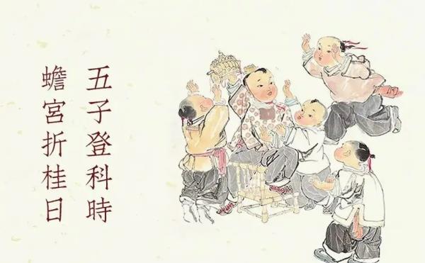针言“五子及第”中的“五子”指的是五个儿子。这一针言出自于《宋史.窦仪传》,此中“五子”指的是宋朝窦禹钧的五个儿子宋仪、宋俨、宋侃、宋偁以及宋僖。