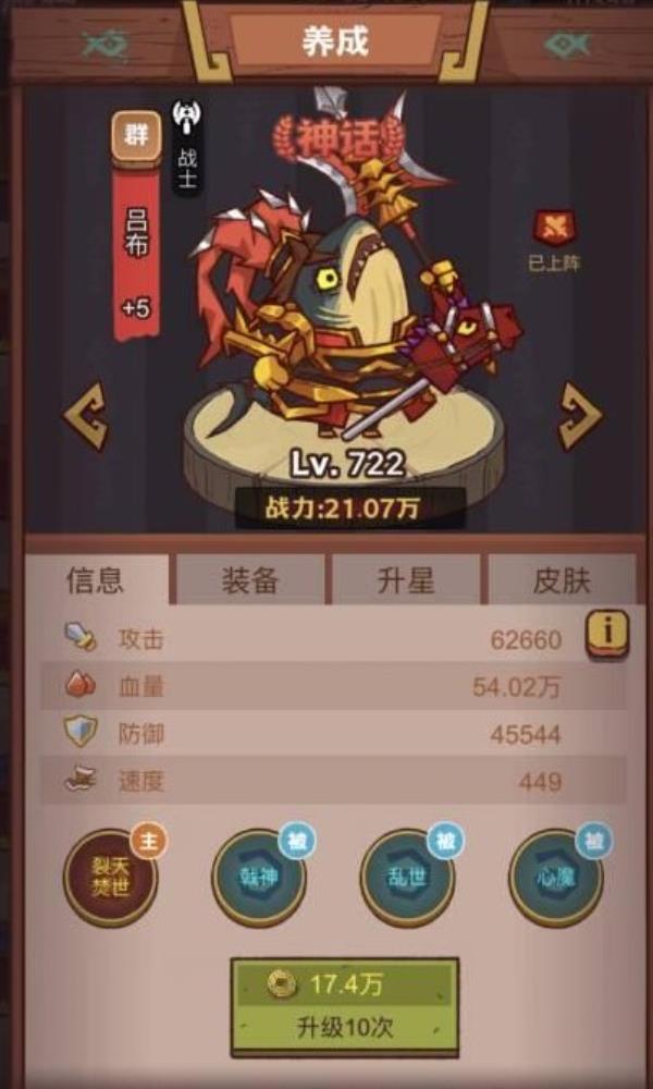 吕布:是一个危险极高的战士,而且血量太低时会提高自身多种属性。