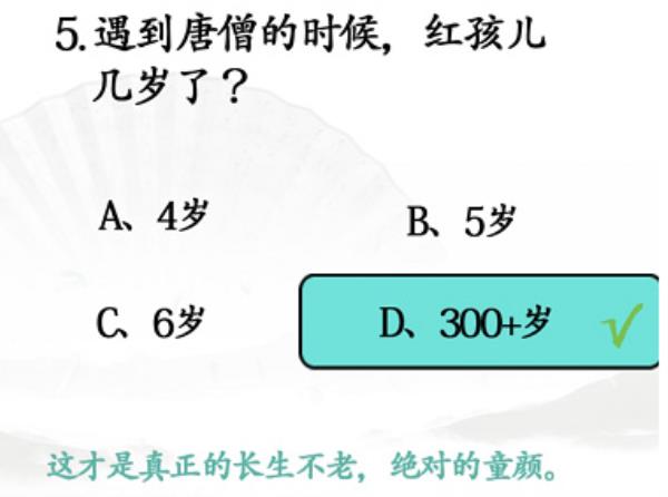 五、第五题:遇到唐僧时红孩儿几岁了?