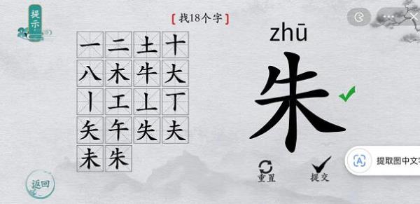 离谱的汉字朱找字攻略-朱字找18个字图文攻略