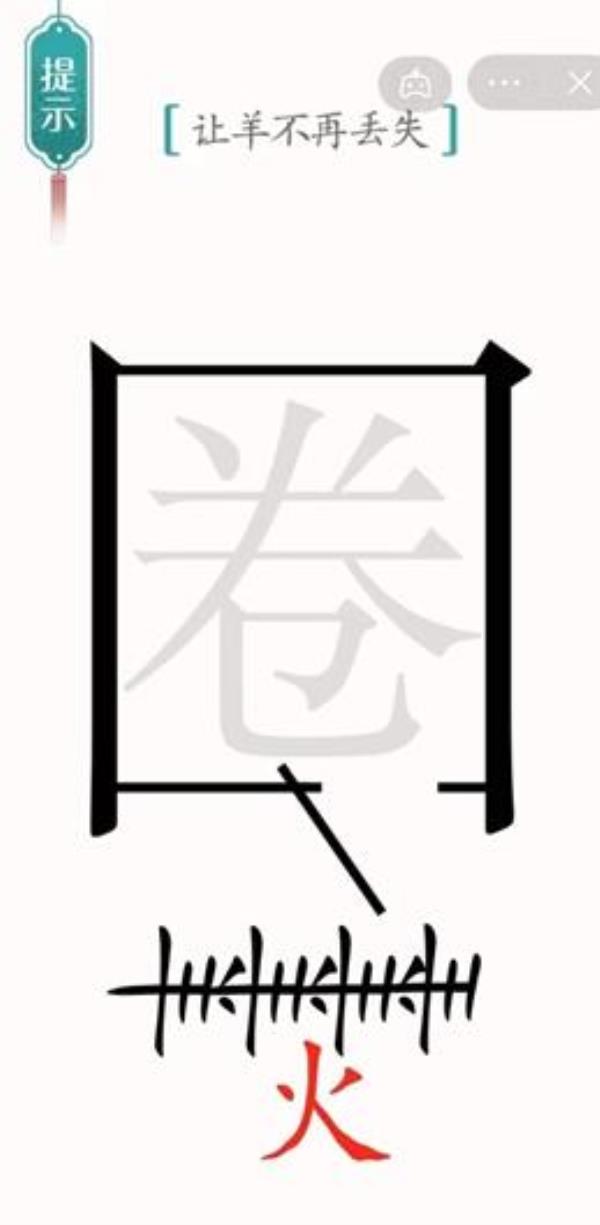 以上就是小编给大家带来的汉字邪术让羊再也不丢失攻略,咱们只需让这些羊变为羊肉串,就能留住它们了,小火伴们赶忙去测验考试一下吧!