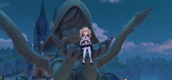 一、起首咱们前去蒙德城西风教堂,须要爬到风神像手心中。