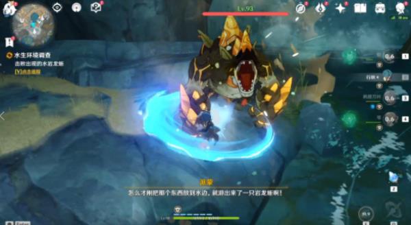二、来光临时主矿道使命指导所示区域的水边光点处,将奇异的物件放入水中,然后使用水元素进犯激活它会泛起一只岩龙蜥。
