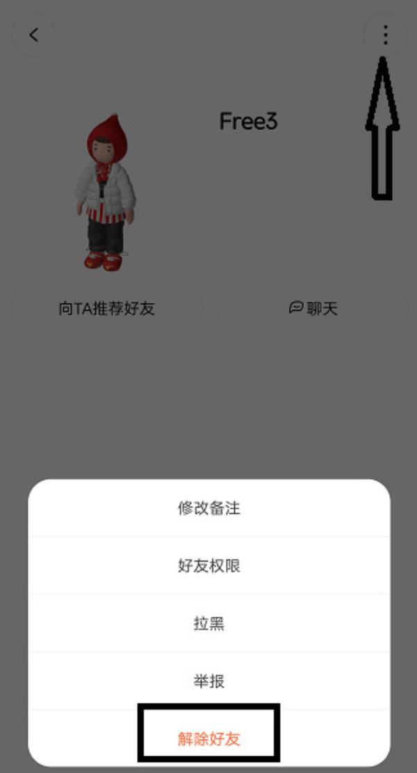 四、末了咱们点击右上角的三个点图标,便可点击消除老友实现老友删除了。