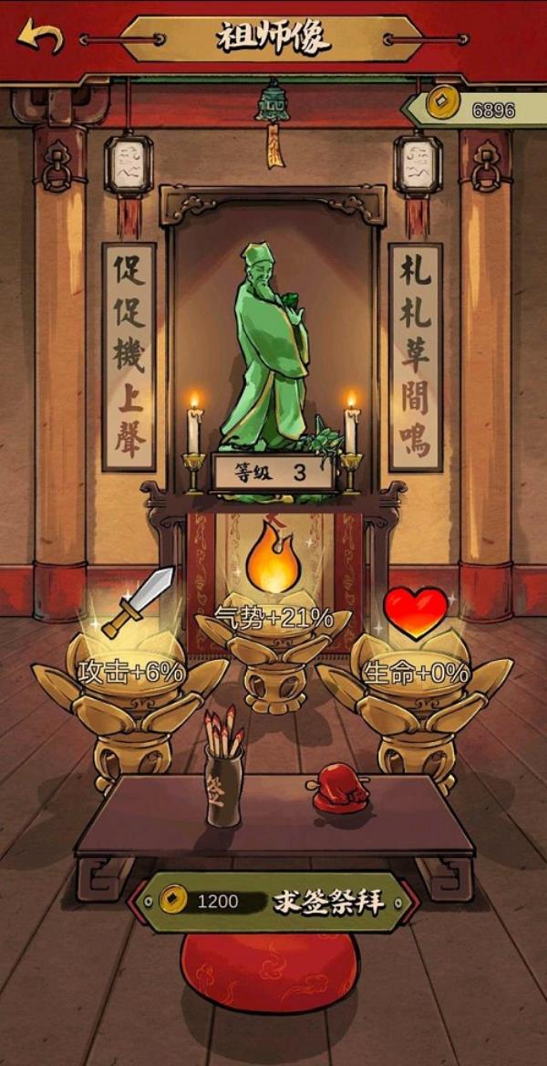 二、咱们在祖师像可以耗费铜币给蛐蛐祈福,祈福越多,咱们蛐蛐就越强,简略来讲就是加buff。