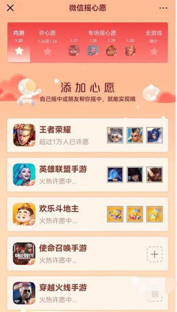 末了说一下,摇心愿页面除了了王者荣耀外,另有其余好比以及平精英等腾讯游戏也会在此上线系列勾当哦。