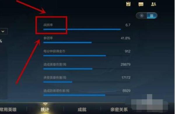 二、在统计中便可看到如图所示的战损,与玩家的对局数据相关。