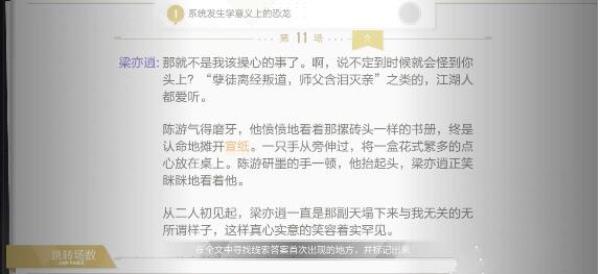 在绝对演绎游戏中有不少脚本,咱们须要在脚本中找到线索才气实现使命,信赖不少的小火伴们还没有知道全国第一脚本线索的详细位置在那里,下面小编为大家带来了绝对演绎全国第一脚本线索详情一览,感乐趣的小火伴们必然没有要错过了,赶忙来看看吧。