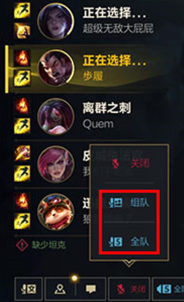 三、在游戏中起头对局,点击如图位置的麦克风按钮,抉择全对或者者组队。