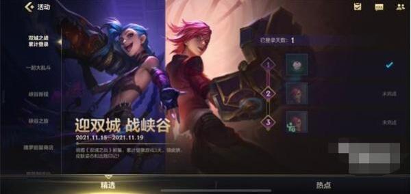 玩家进入游戏点击勾当图标,找到双城之战累计登岸,点击便可进入参预勾当。