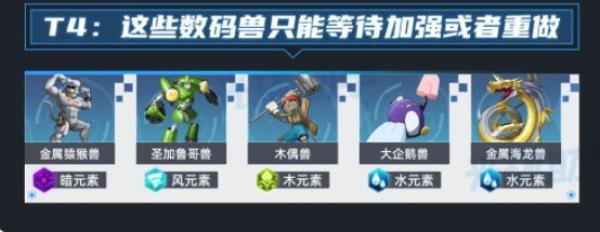 T4:金属猿猴兽、圣加鲁哥兽、木偶兽、大企鹅兽、金属海龙兽