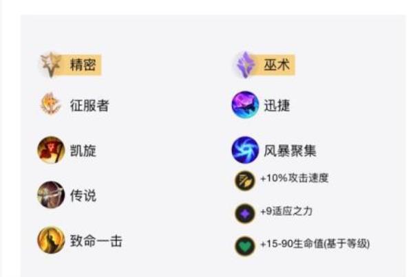 (2)副系符文:巫术+迅捷+风暴汇集;