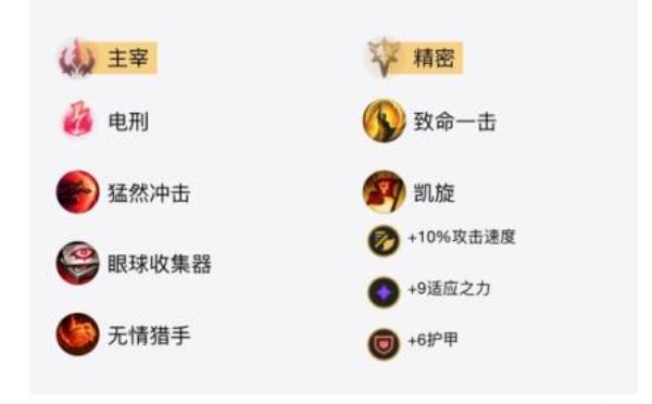 (1)主系符文:主宰+电刑+蓦地打击+眼球采集器+有情猎手;
