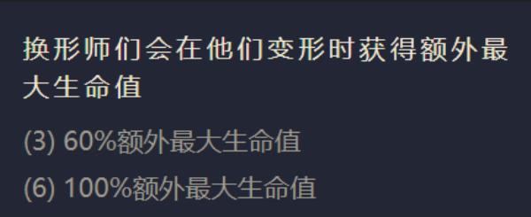 当同时领有三个换形师、六个换形师的时辰羁绊效果划分为:换形师在开释技术变身时分外获取最大生命值6神仙道%、1神仙道神仙道%。(以下图所示)