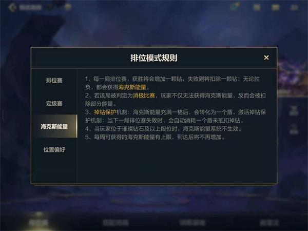 一、玩家每一玩一局排位赛,获胜增长一颗钻,失败扣除了一颗,城市获得海克斯能量;