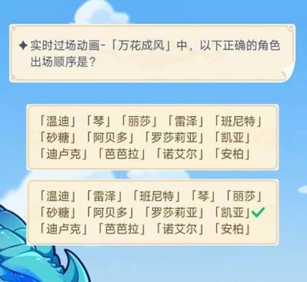原神万花成风角色出场顺序-原神周年20问答案大全