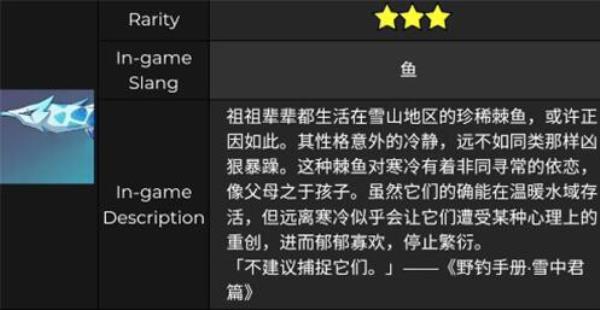 原神雪中君是游戏中的一种鱼,望文生义,生长在雪山,长患上很是悦目,通体银白色的鱼。原神雪中君有甚么用?下面小编就向大家带来原神雪中君作用先容,一块儿看看吧。