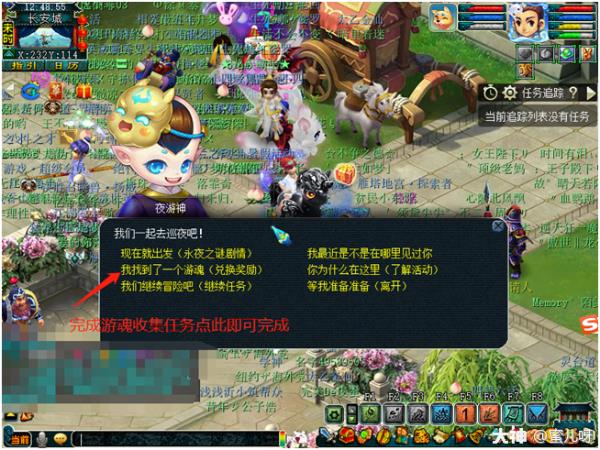 三、找到以后,回到长安城的夜游神处,点击我找到了游魂,便可实现使命。