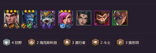 三、潜行者声势推选:狂野+海克斯科技+潜行者+斗士+换形师。