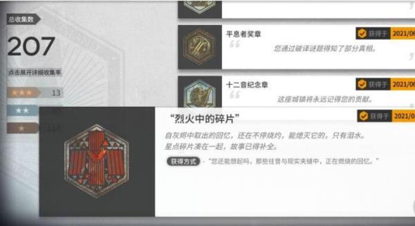 一、猛火中的碎片,是一个隐蔽徽章,须要通关第八章的全数关卡;