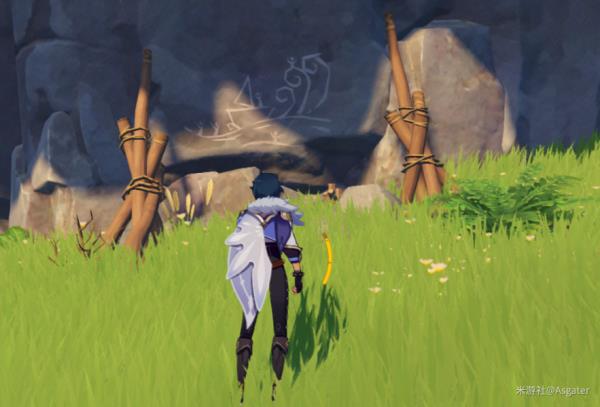 一、壁画在岩穴内里,未解锁岩穴须要先使用羽球冲破墙壁,须要解谜石柱,