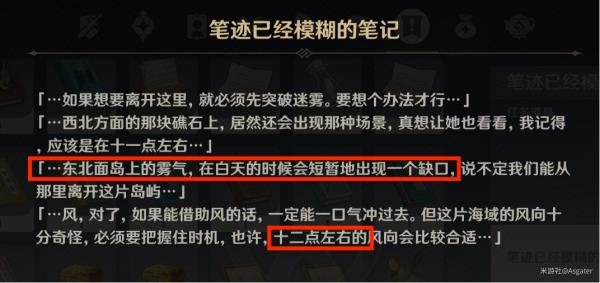 二、按照条记内容在达到标识表记标帜2处的小岛以后将时间调整至午时12点既可以经由过程风向的批示(海面上存在的白色条纹)抵达西南处的无名小岛。