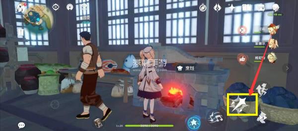 三、然后用芭芭拉对着锅,按平凡键就行,或者者行秋e。