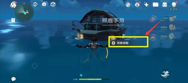 四、末了就能爬到船上,驾驶浪船了,这个浪船锚点,每一个浮岛都有,须要本身解锁哦~