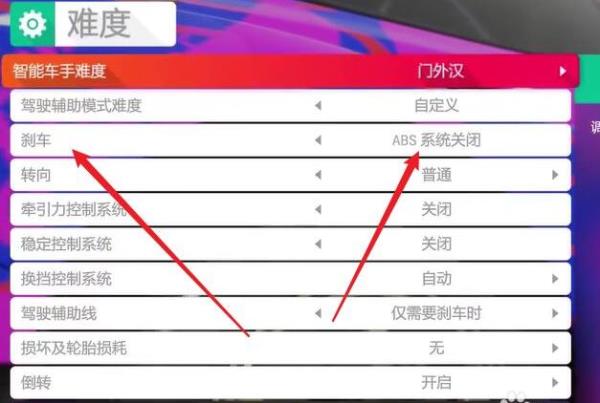 键盘玩家关上ABS体系,手柄玩家视自身环境可关闭或者开启ABS体系。