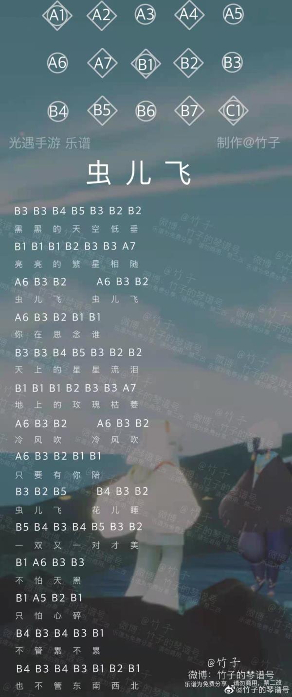 原神虫儿飞琴谱-虫儿飞键盘手机乐谱分享